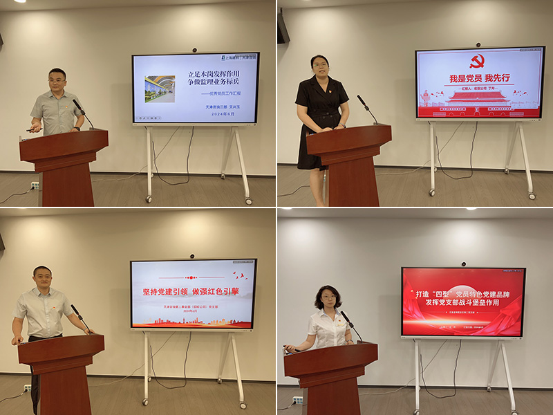 先進基層黨組織天津咨詢第二事業(yè)部(招標公司)黨支部書記于浩鵬、泛亞咨詢黨總支第二黨支部書記王然,優(yōu)秀共產黨員代表第一事業(yè)部(宏亞公司)丁月、第三事業(yè)部(成套監(jiān)理公司)艾興玉分別作典型交流發(fā)言。