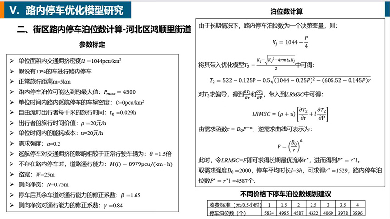 該項目是宏亞咨詢公司參與的首個世界銀行項目,同時也是宏亞咨詢公司在特大城市核心區停車機制研究領域的一次突破性探索和嘗試。針對天津市中心城區核心區多為老城區且商業設施集中、停車資源分散、停車秩序混亂、停車信息難以獲取等問題實際,宏亞咨詢公司主要圍繞進行以下幾個方面開展研究工作:一是按照《天津市推動城市停車設施發展實施方案》有關要求,將城市更新理念融入研究工作,通過對區域內停車現狀進行調查和分析,結合大量基礎數據,對區域內未來停車發展趨勢和需求進行了預測。二是根據數據分析結果,建立了區域路內停車容量優化模型和路內停車動態調整方案,并結合該區域內慢行交通改善工程有關要求,提出了機動車停車運營改善方案,促進區域內慢行交通發展。三是為解決停車設施建設融資難問題,提出了“積極投資—建設活躍—優質服務—經營收益—獲取回報”的工作機制,推動天津停車產業發展步入規范化、制度化的良性循環軌道。