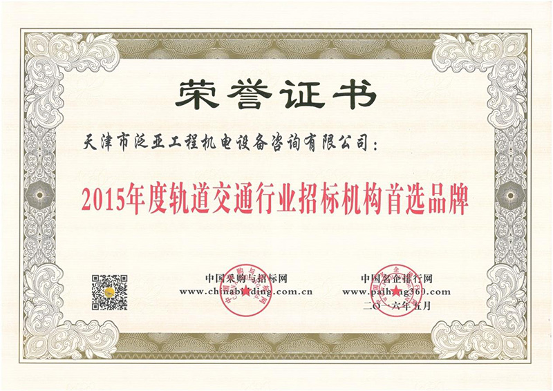 2015年度軌道交通行業(yè)招標機構(gòu)首選品牌