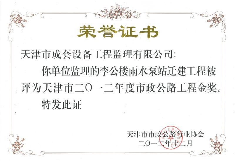 市政公路工程金獎(2012年)