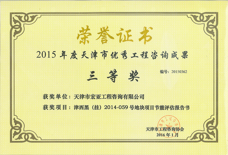 優(yōu)秀咨詢成果三等獎(jiǎng)(2015)