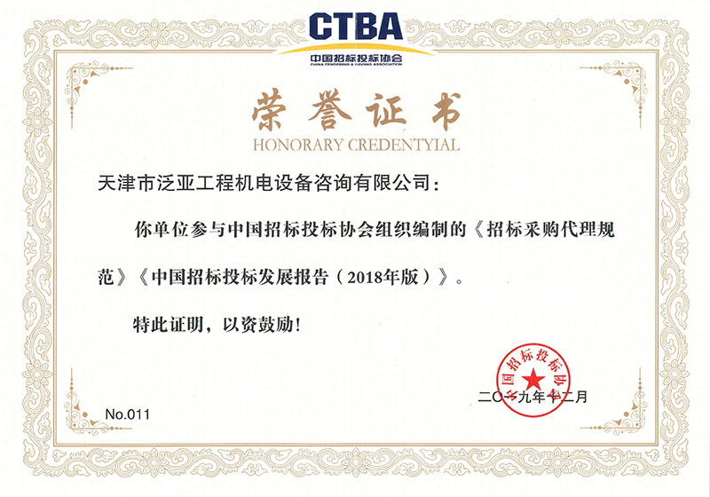 招標采購代理規范編制榮譽證明